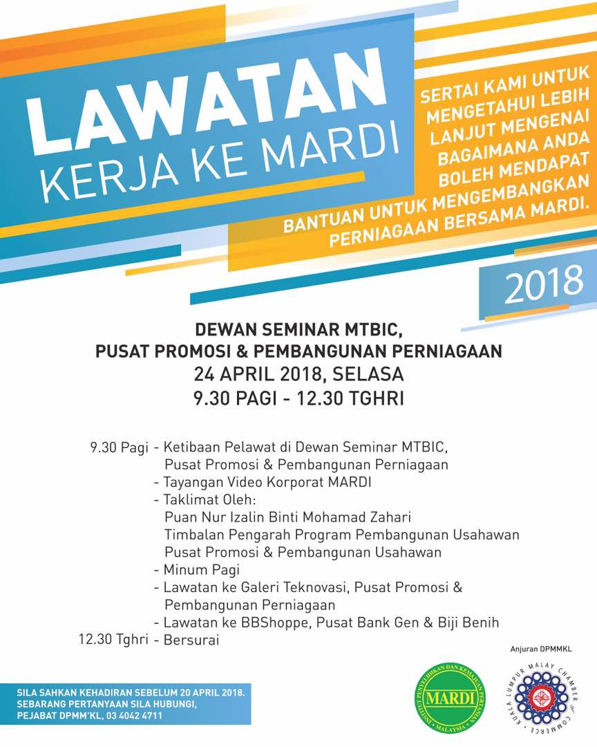 Lawatan kerja ke MARDI akan diadakan pada 24 April, Selasa jam 9.30 pagi.